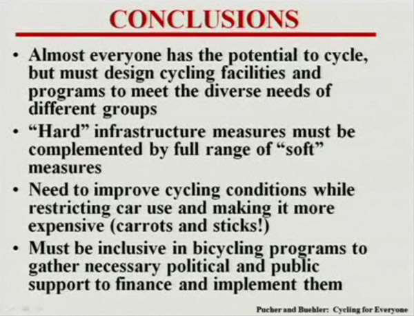 John Pusher provide stunning arguments regarding why policy maker should make cycling the most attractive mode of commuting for everyone, including children and elderly.